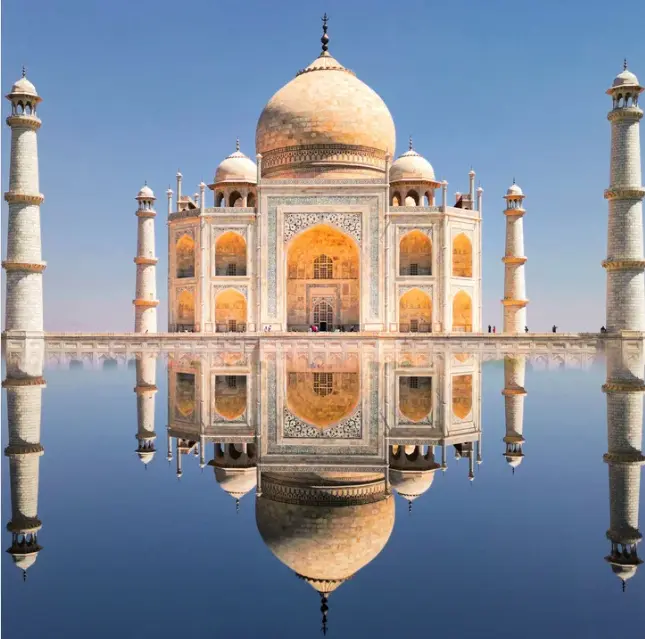 Símbolo del amor eterno, el Taj Mahal en Agra, India, es una obra maestra arquitectónica. Construido por el emperador Shah Jahan en memoria de su amada esposa, Mumtaz Mahal, este mausoleo de mármol blanco es Patrimonio de la Humanidad por la UNESCO. Su impresionante belleza y romántica historia atraen a millones de visitantes cada año.