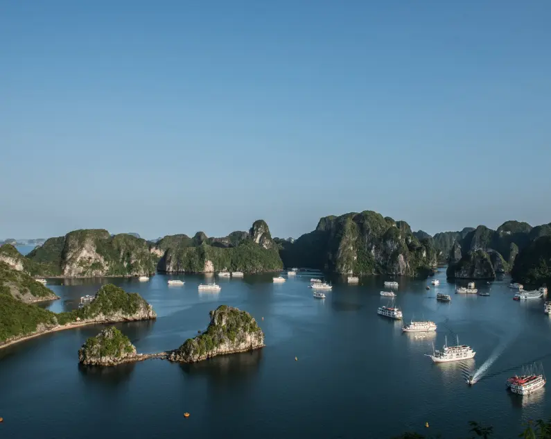 Caracterizada por sus aguas color esmeralda e imponentes islas de piedra caliza, la bahía de Ha Long en Vietnam es una maravilla natural que cautiva a todos los que la visitan. Este sitio declarado Patrimonio de la Humanidad por la UNESCO ofrece un paisaje de otro mundo, perfecto para navegar, practicar kayak o simplemente sumergirse en su serena belleza.
